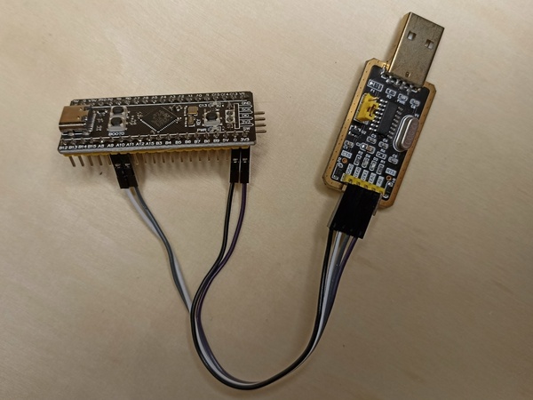 Провод TX (передатчик) мы должны подключить к выводу PA10 платы, который соответствует USART1_RX (приёмник).