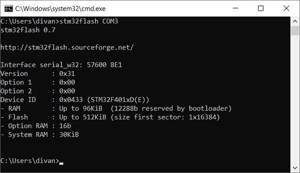Распакуйте архив, и добавьте файл приложения stm32flash.exe в папку операционной системы C:\Windows\System32