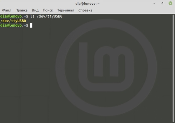 Если компьютер корректно видит USB-UART переходник, то при подключении мы сможем увидеть новое устройство /dev/ttyUSB0